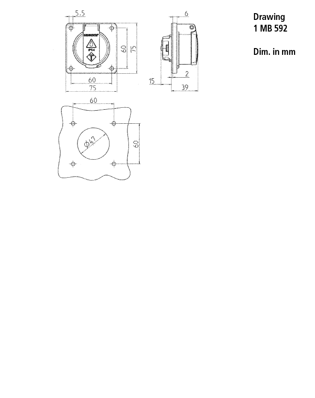 Paneeliasennetut pistorasia SCHUKO® 11331F kanssa IP54